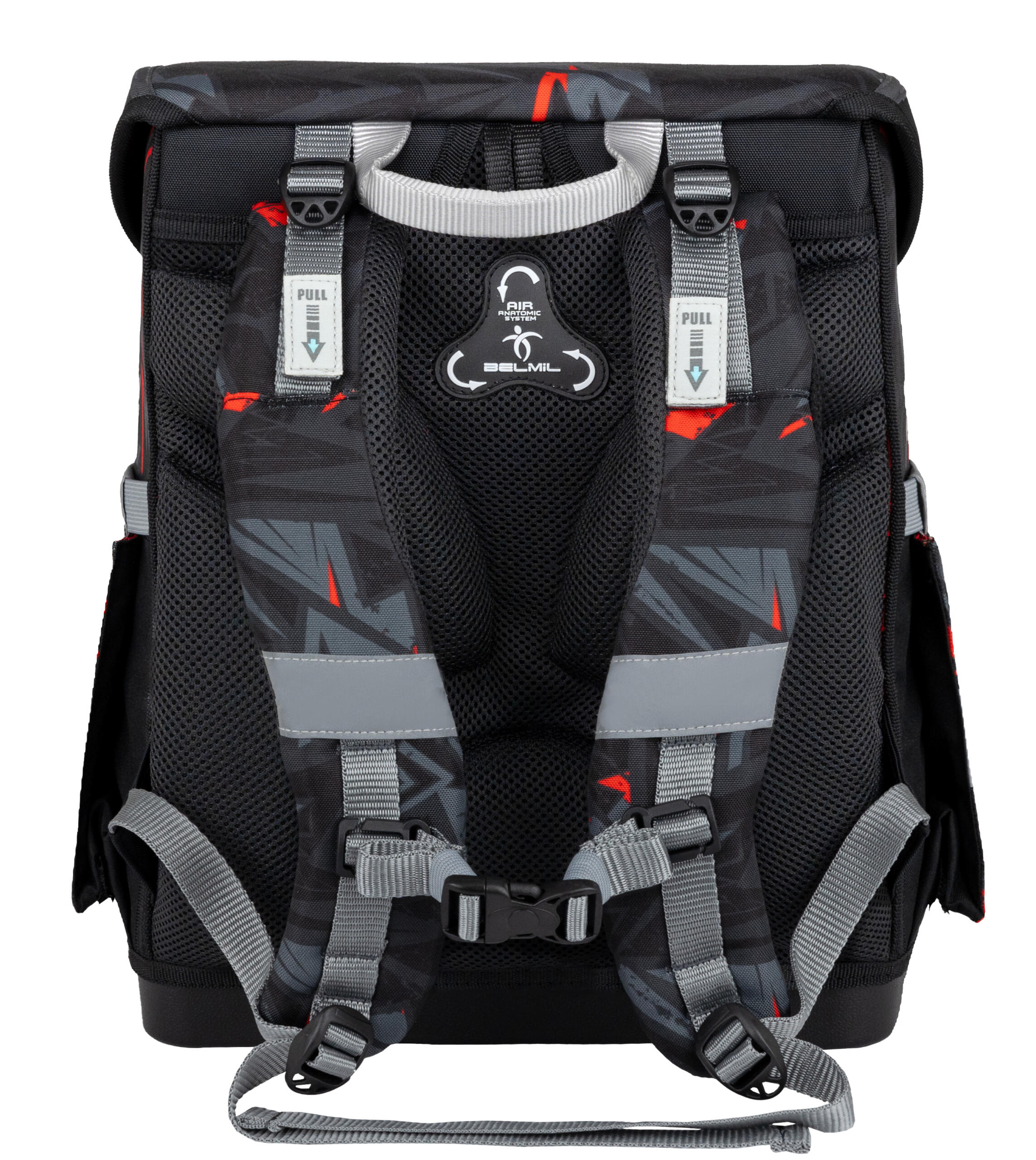 Sadrži pametno podijeljene unutarnje odjeljke koji djeci pomažu organizirati školski pribor. Postoje tri odvojena odjeljka namijenjena za pohranu udžbenika i bilježnica svih veličina. Dva manja džepa i džep s patentnim zatvaračem pružaju dodatnu pohranu za mobilni telefon i manje predmete, poput karata i ključeva. Gornji poklopac ima držač rasporeda. Prednji džep namijenjen je za pohranu pernice ili kutije za ručak. Bočni džepovi s elastičnim trakama za smještaj boce vode (do 0,7 L) i kišobrana.